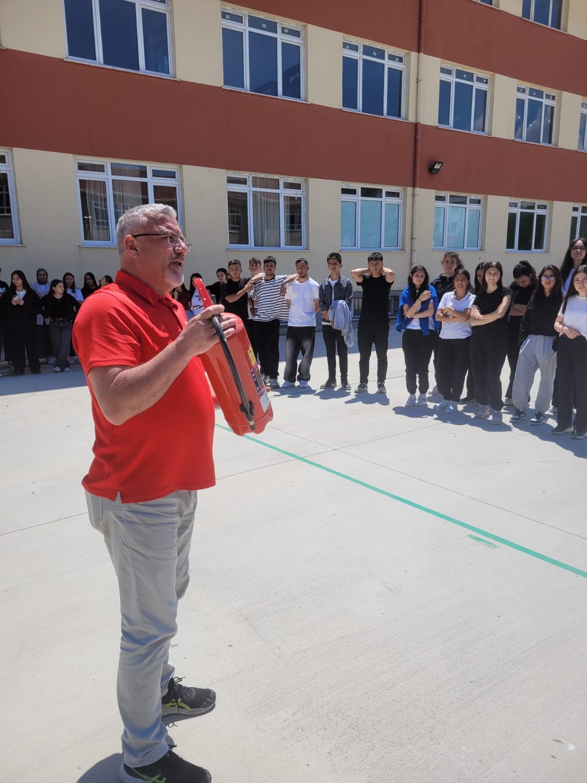 Beylikova Çok Programlı Anadolu Lisesi'nde Afet Farkındalık Eğitimi ve Yangın Tatbikatı Gerçekleştirildi Beylikova Çok Programlı Anadolu Lisesi'nde öğretmen, personel ve öğrencilere yönelik Afet Farkındalık Eğitimi düzenlendi. Eğitimin ardından yangın tahliye ve söndürme tatbikatı başarıyla uygulandı. Afet farkındalık eğitimi, Eskişehir İl Milli Eğitim Müdürlüğü Arama ve Kurtarma Birimi (MEB AKUB) Lideri Yılmaz Yıldız tarafından verildi. Katılımcılara afetlere karşı hazırlıklı olmanın önemi, temel afet bilinci ve doğru davranış şekilleri hakkında bilgi aktarıldı. Yangın eğitimi ile tahliye ve söndürme tatbikatı ise İş Güvenliği Uzmanı İlker İyilik'in koordinasyonunda gerçekleştirildi. Tatbikat kapsamında okul binası güvenli şekilde tahliye edilirken, yangın söndürme teknikleri de uygulamalı olarak gösterildi. Bu etkinlik, öğrenci ve personelin olası afet durumlarına karşı bilinçlenmesini sağlamak ve okul güvenliğini artırmak amacıyla gerçekleştirildi.